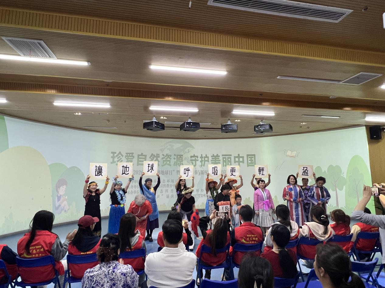 活动现场亮点纷呈,诗韵千年,绿染今朝生态诵读会氛围感拉满。参与者深情朗诵《春夏秋冬》《大自然母亲》等赞美山河生灵的经典诗篇,搭配悠扬鼓乐与器乐演奏,古韵流转、诗意盎然,以书香致敬绿水青山。废旧物品创意环保服饰秀《让地球呼吸更轻盈》创意满满,大家巧用废旧塑料、快递包装等废品匠心制作精美服饰,生动诠释变废为宝低碳理念,将绿色环保变身潮流风尚,赢得现场阵阵喝彩。