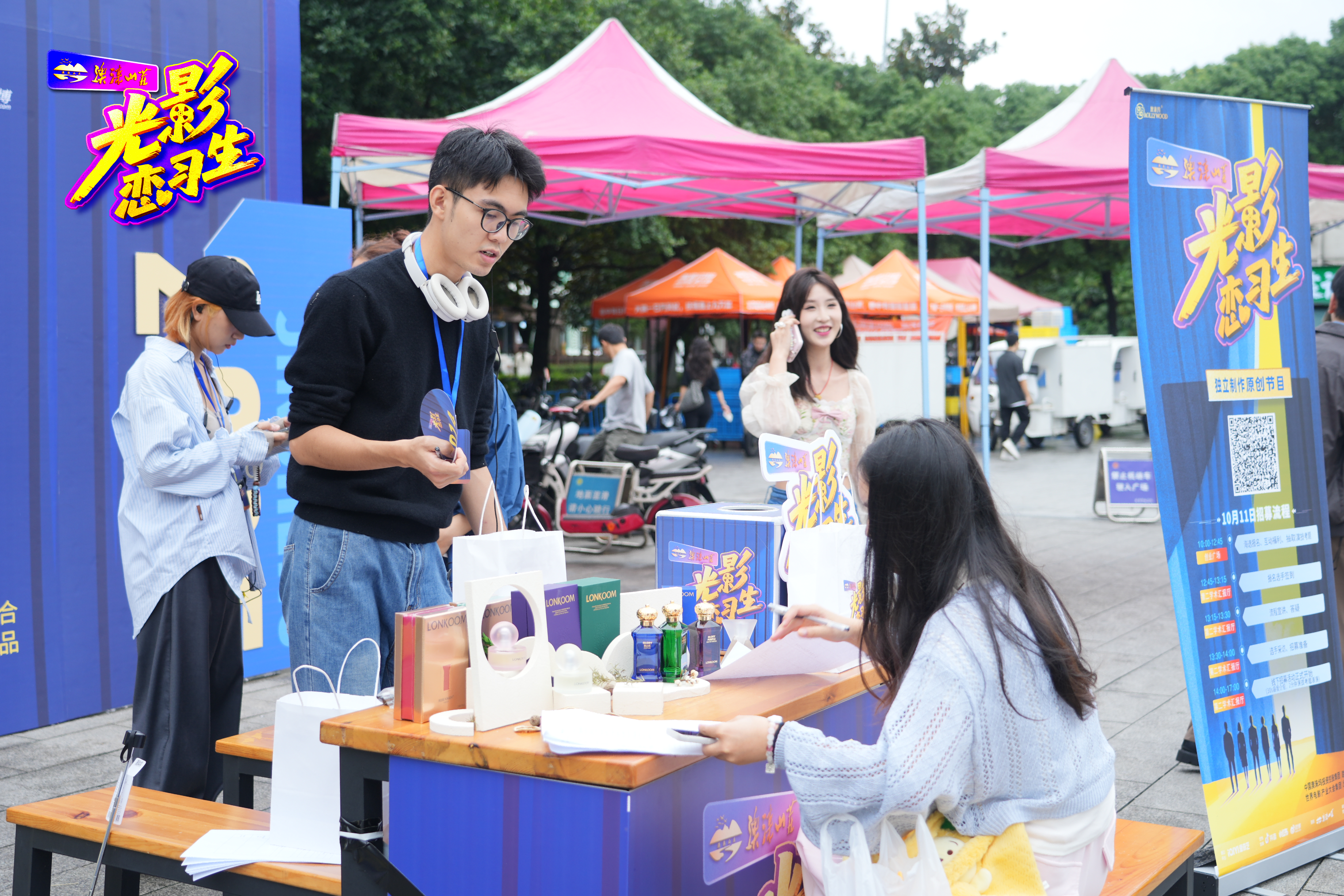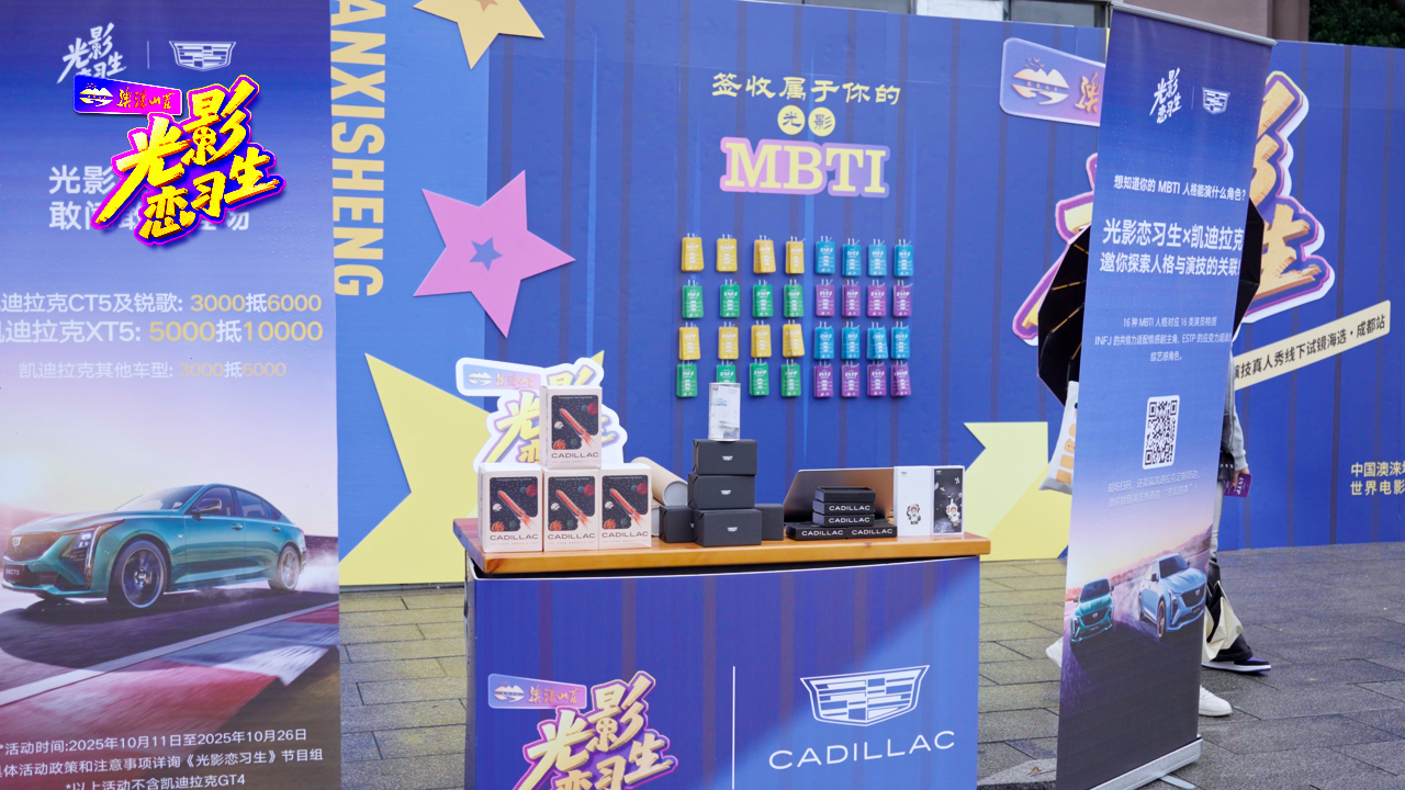 上午10点,创业广场逐渐热闹起来,报名台前围着一拨又一拨前来咨询的同学,气氛活跃。现场最吸睛的当属互动福利区——“MBTI演技角色探索”环节让同学们直呼上头,大家纷纷翻阅16型人格对应的演员角色卡片,寻找适合自己的戏路。不少同学在探索人格与表演关联的同时,还现场扫码填写问卷,轻松获得凯迪拉克试乘试驾资格。与此同时,小红书笔记征集活动也同步引爆(截至10月18日),同学们为了冲击点赞前三、抱走「光影追梦礼包」,纷纷化身创作达人。而将现场气氛推向高潮的,当属演技考题抽取环节——这一“王炸”瞬间拉满了现场的紧张与期待感,也为下午的正式考核做足了铺垫。
