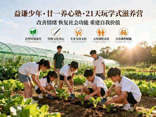 作为全国首个将传统文化深度融入心理康复的沉浸式项目,益谦少年养心塾独创"玩学疗愈"核心理念,通过21天阶梯式康复体系实现三阶段突破:首周通过共居生活、自然接触与非压力交流建立安全信任关系;次周通过耕读生活、陶艺射艺、研学实践唤醒内在生命力;末周通过团体讨论、哲思对话激发未来规划能力。项目融合"以大地为母、以五行为师"的东方智慧,在种菜采摘、溪流摸鱼等劳动中重塑亲子关系,在孝经诵读、毛笔字练习中传承文化基因,在参观水厂、学习中草药过程中拓展认知边界。