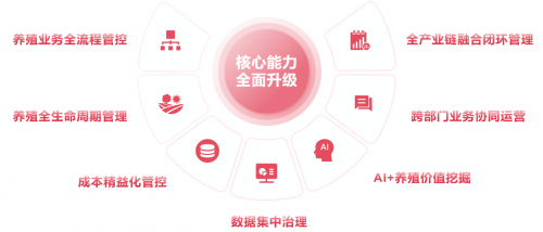 数据应用场景落地。通过对海量生产数据的深度挖掘与批量分析,不仅能及时发现生产潜在问题,还能通过算法优化形成最优成本模型与饲养模型(例如根据养殖数据为育肥猪制定品系差异化饲喂方案,并结合生长监测持续优化);