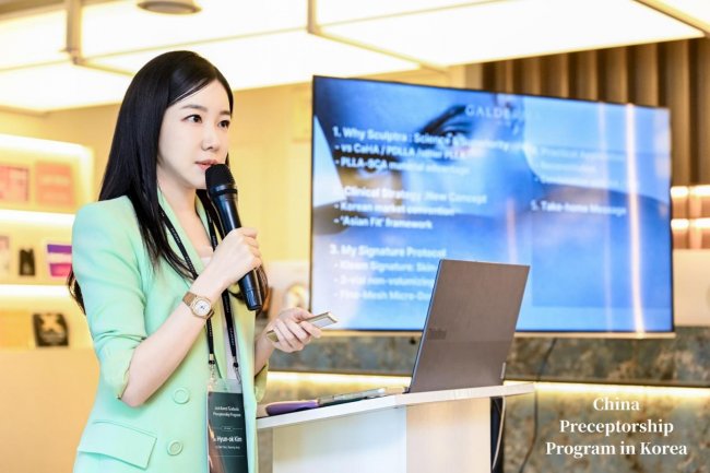 本次韩国学术培训大咖云集,理论课程干货满满。Dr. Yongwoo Lee、Dr. Hyun Ok Kim、Dr. Joong Su Kim依次带来专题讲座,围绕韩国主流紧致抗衰理念、塑妍萃作用机制与临床适应症、瑞蓝・智臻精准注射策略、求美者全周期管理等核心内容进行系统分享,全面解析韩国头部专家的治疗逻辑与临床技巧。成红院长作为塑妍萃2025“年度紧致塑妍大师”,全程专注聆听、认真研习,结合自身二十余年临床经验,细致吸收国际前沿理念与诊疗思路,在专业碰撞中实现技术与认知的双重提升。